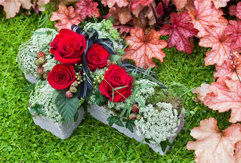 Wichtig ist, dass die Grabbepflanzung für den Sommer vor dem großen Hitzeeinbruch erfolgt. Nur dann haben die Pflanzen noch genug Zeit, sich tief einzuwurzeln und damit resistent gegen die anhaltende Hitze zu werden. Generell ist besonders im Sommer regelmäßiges Gießen und Düngen auf dem Grab notwendig, damit die Blumen prächtig und gesund wachsen. Ein Grab sollte aber niemals eine Belastung für die Hinterbliebenen sein, sondern die Möglichkeit, den Verstorbene nahe zu sein und an sie zu denken. Deshalb sollte man auf eine sehr pflegeleichte Grabbepflanzung zurückgreifen, die nicht viel Arbeit macht. Mehrjährige Pflanzen verringern die Pflanzarbeiten und Bodendecker reduzieren das Unkraut auf dem Grab. Blühende Pflanzen geben dem Grab dann eine saisonale Note.