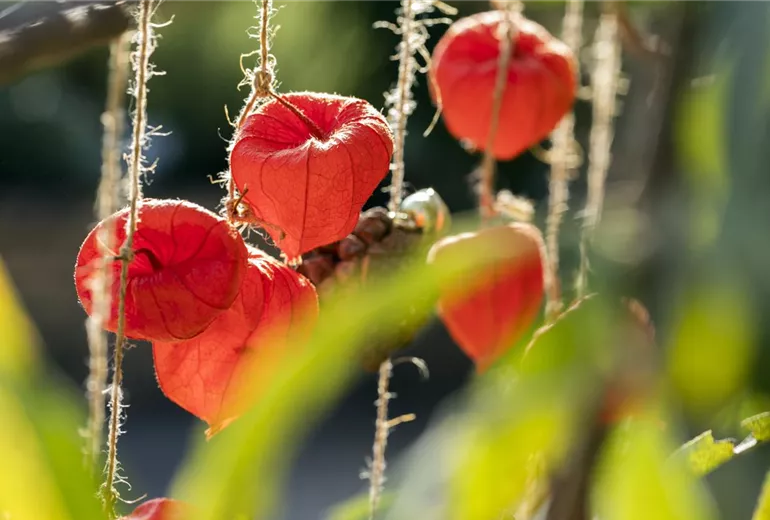 Windspiele für den Garten können schnell ein bisschen teurer werden und oft passen die verschiedenen Ausführungen nicht perfekt in das Gesamtbild des Gartens. Da ist es natürlich praktisch sich sein eigenes Windspiel zu basteln. Das kann man ganz nach den eigenen Wünschen gestalten und dabei richtig kreativ werden. Die perfekte Beschäftigung für einen stürmischen Herbsttag. Für ein Windspiel mit Physalis und Tannenzapfen werden natürlich genau die benötigt. Außerdem aber auch ein langer Ast, Paketband, eine Schere und kleine Glöckchen. Warum Physalis so toll sind? Die Lampions der Pflanze fallen nicht in sich zusammen, wenn sie trocknen und sind so leicht, dass sie im Wind schön wehen. Die Tannenzapfen sorgen im Windspiel dafür, dass die Fäden nicht vollständig unkontrolliert durch die Gegend wehen. Und die Glöckchen machen im Wind ein melodisches Geräusch.